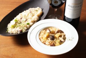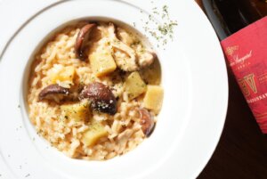 【栗と色々キノコのポルチーニ茸薫るクリームリゾット】